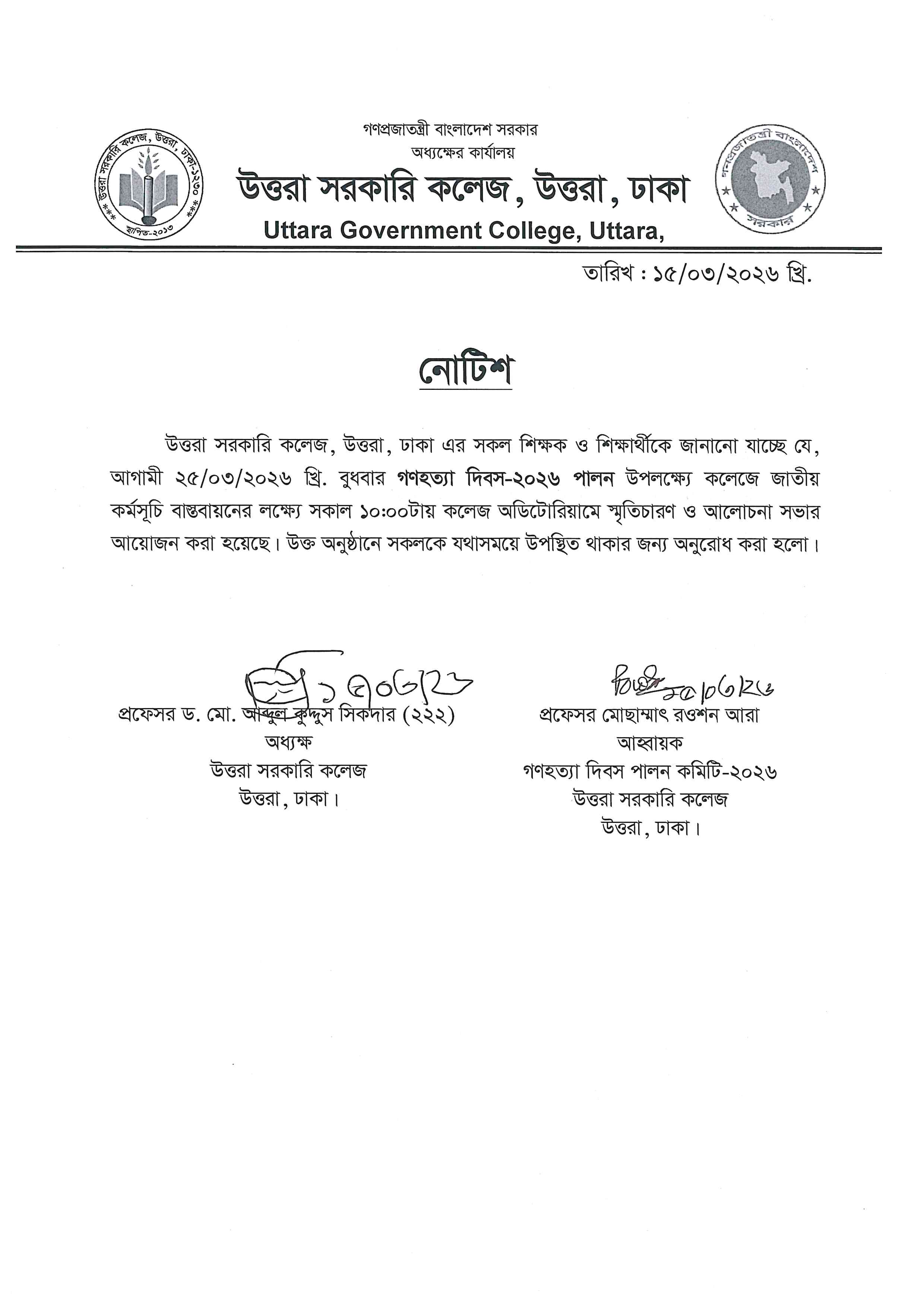 ২৫ মার্চ নোটিশ
